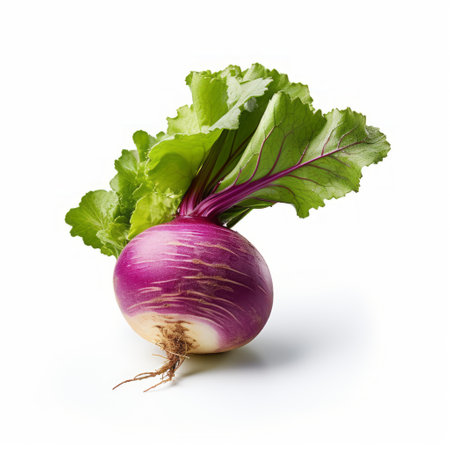 Fresh turnip with leaf, isolate on white background. Macro studio shot. Useful vegetable, dietary vitamin. AI generated.