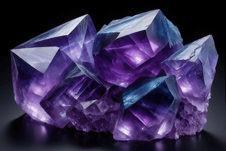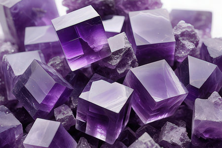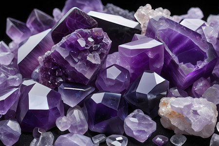 Close-up of natural amethyst crystals with shimmering purple hues, creating a textured abstract background perfect for use as copy space in design.