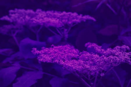 Abstract ultraviolet grass background Close up of small bush, painted in ultra violet colo