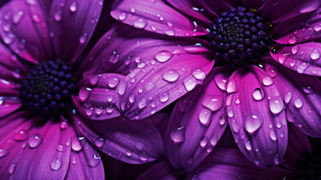 A vibrant display of shimmering purple particles accented by soft blurs and glistening droplets, creating a dreamy, magical atmosphere perfect for ele