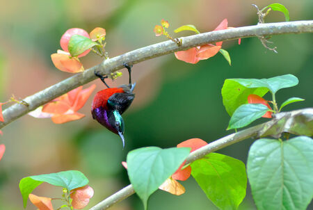 Crimson Sunbird (Aethopyga siparaja) catch on branch in nature