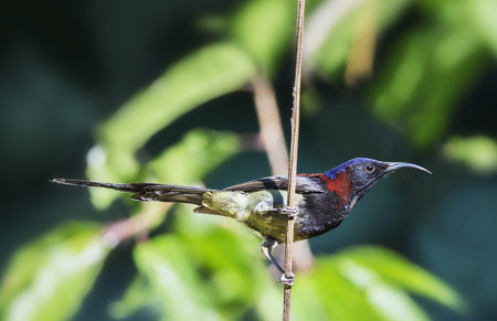 Beautiful bird, Copper-throated Sunbird (Lonchura malacca) perching on a branch, Thailand