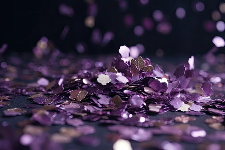 Purple bokeh of confetti on a black background.