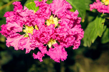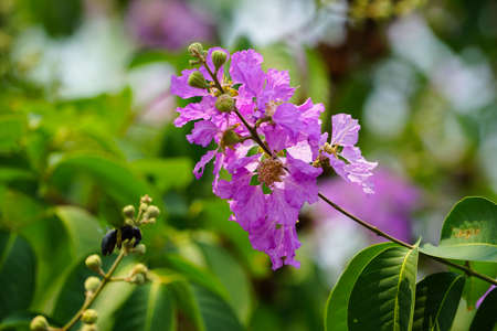 Lagerstroemia loudonii flower or Lagerstroemia floribunda. Beautiful blooming pink-purplish-white blooming flowers on the against the bright morning.