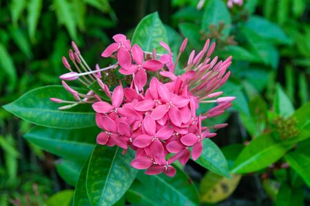 A beautiful colorful tropical flower Jungle Flame (Ixora coccinea) a member of Madder Family Family Rubiaceae