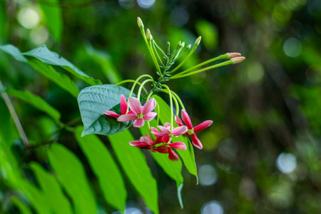 Combretum indicum, or Rangoon Creeper, Burma creeper is a fast growing tropical fragrant flowers that shift from white to red. It is valued as for traditional medicine