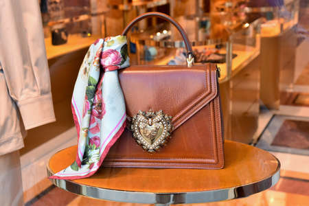 ROME JUNE 30,2020 BAG ON DISPLAY AT DOLCE & GABBANA BOUTIQUE IN ROME