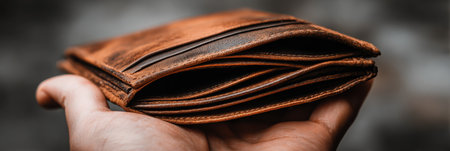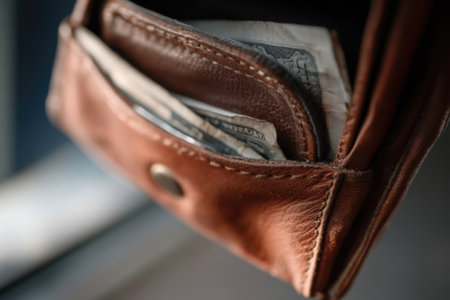 A close-up of a leather wallet with old, crumpled bills peeking out, reflecting the diminishing worth of cash in today's economy and its implications.