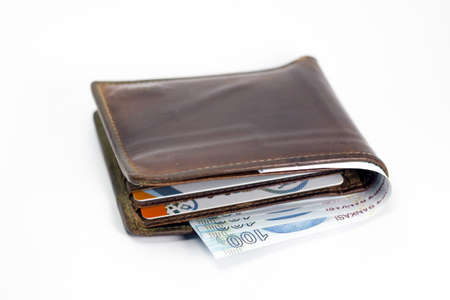 Turkish lira banknote in wallet isolated on white