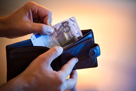 hands with last five euro in wallet