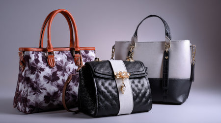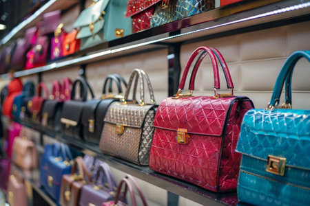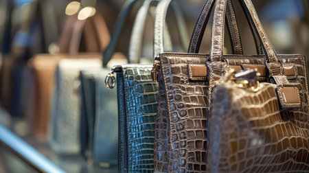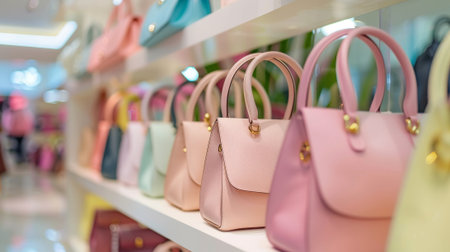 Fashionable women's handbags displayed in a store setting highlighting trendy accessories for modern style enthusiasts. concept of fashion, accessories, shopping experience.