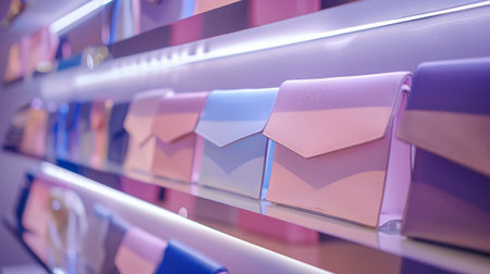 Fashionable women's clutches displayed in a luxury boutique. concept of stylish accessories, fashion trends, elegant design.