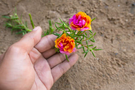 Close-up view of Portulaca, Moss flowers. Pink, red, and other roses that are blooming beautifully on the ground in a public park are often seen everywhere in the Thai countryside.