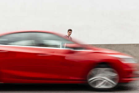 Sport car on the road with motion blur. Long exposure shot.