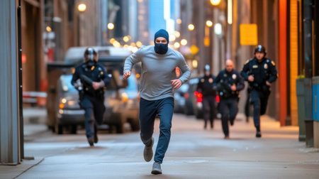 Police officers running on street with motion blur effect