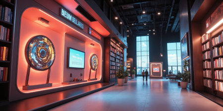 Future of Libraries Immersive Knowledge Experiences Visual concept of the future of libraries as immersive knowledge experience centers, libraries transformed into interactive
