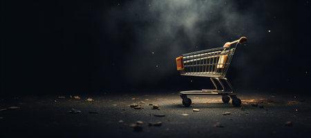 Shopping Cart on a Black Background as a Concept of Buying Goods