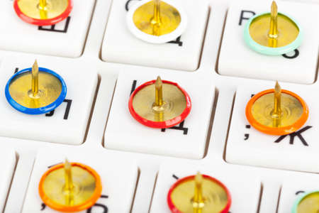 Pins on computer keyboard - concept background