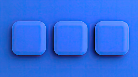 Three square shapes, rendered in a solid shade of blue, with a 3D effect, arranged horizontally on a textured blue background. They appear as if they are buttons or interactive elements.