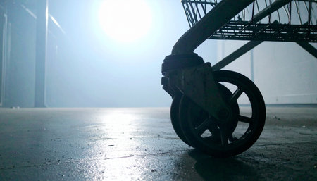Empty shopping cart in abandoned supermarket, symbolizing declining retail industry generated by artificial intelligence
