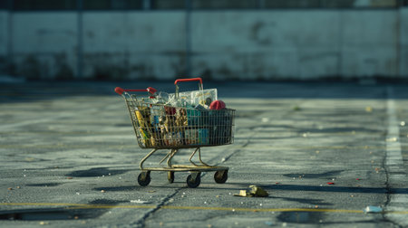 Desolate Shopping Cart: Emptiness of Goods in an Abandoned Parking Slot