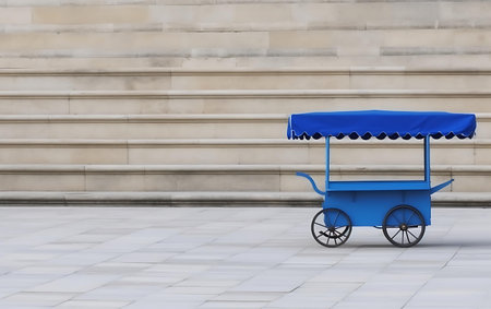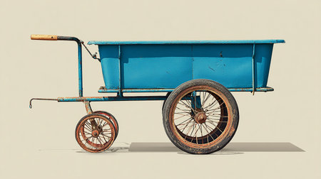 Old blue cart on a light background. 3d illustration. Vintage style.
