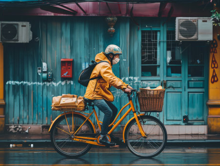 Urban cycling: a sustainable commute through a bustling cityscape
