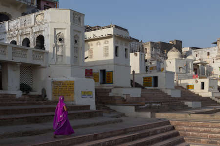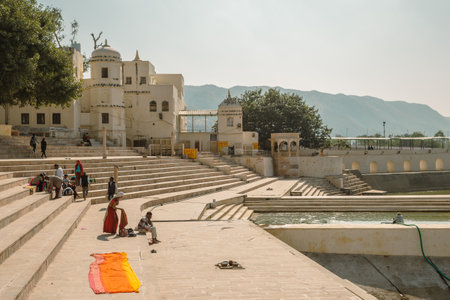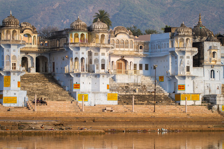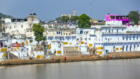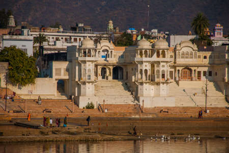 Pushkar, India - December 9, 2017: Ghat and Pushkar lake