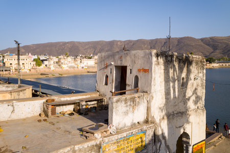 Pushkar, India - February 06, 2019: Ghats at Pushkar holy lake in Rajasthan