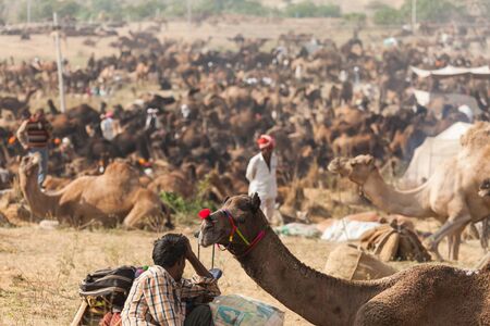 Camel traders with their camels at Pushkar camel festival at pushkar, Rajasthan, India on 19 November 2018