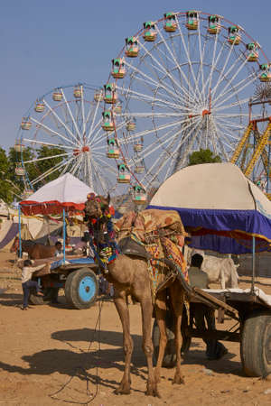 Pushkar, Rajasthan, India - November 6, 2008: Ferris wheels at the annual Pushkar Fair in Rajasthan, India.