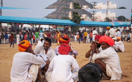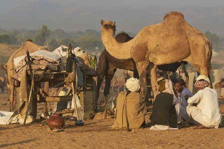 Pushkar, Rajasthan, India - November 7, 2008: Group of camel herders at the annual Pushkar Fair in Rajasthan, India