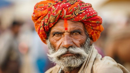 Portrait of Indian man, dressed in traditional attire with turban