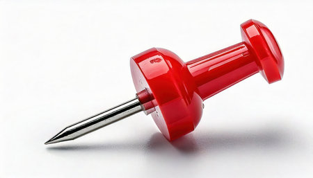Top view of a pin stuck on a surface, leaving ample space around for text or additional visuals, perfect for marking important points
