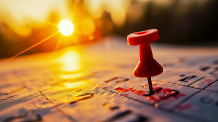 Cropped close up view photo of red pushpin attached to calendar.