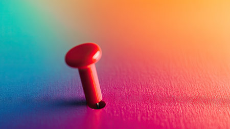 A red pushpin inserted into a foam board, with a vibrant color gradient background.