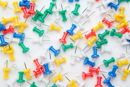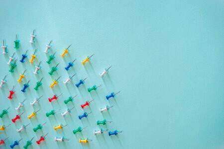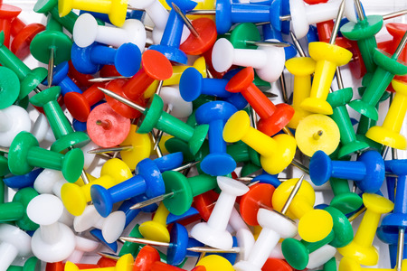 Many colourful office pins on the background