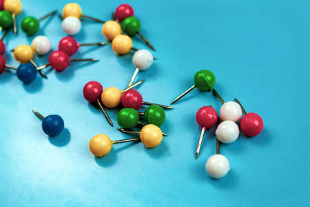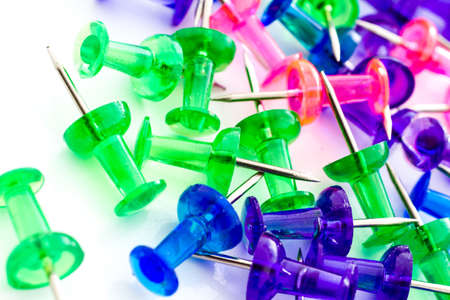 Thumb tacks isolated against colorful background