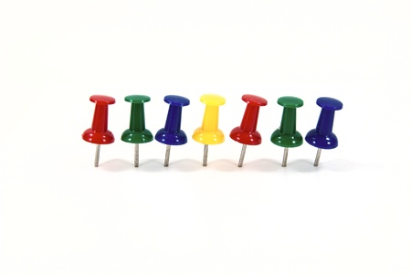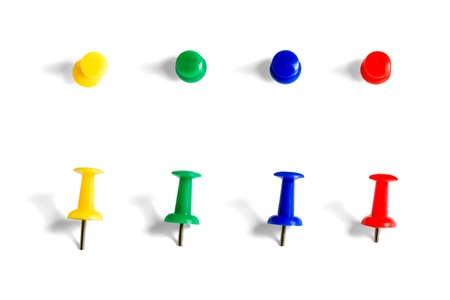 colored pushpins on a white background