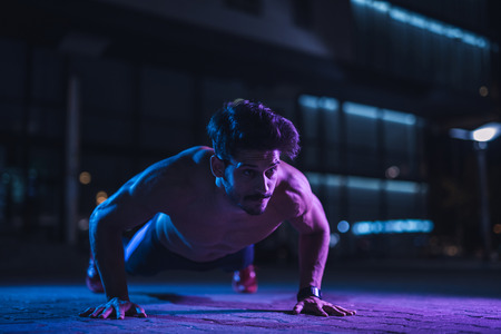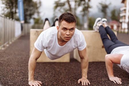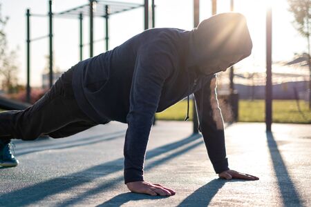 Athlete doing push-ups in the early morning. The concept of a healthy life