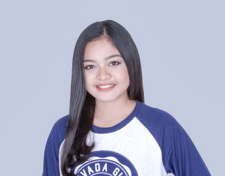 Woman Portrait Beautiful Teenager Young asian Woman isolated on blue background