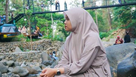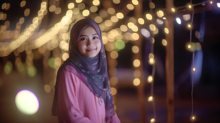Portrait of a beautiful muslim woman wearing hijab with bokeh background