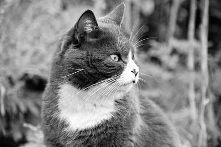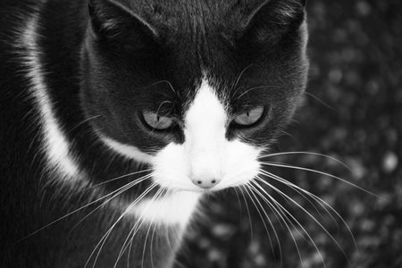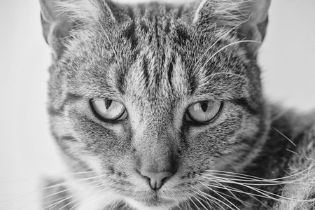 tabby cat black and white color tone