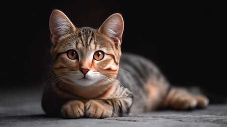 Gray cat portrait on dark background. Cute pet. Created with Generative AI