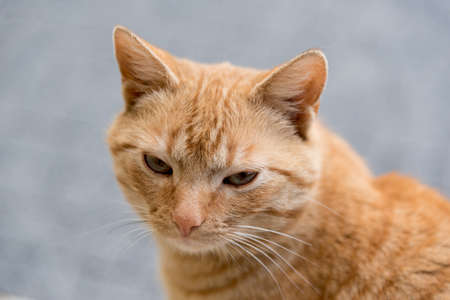 Photo of domestic cat (pet) in closed plan, with a fixed and cute look. Real animal in a real situation.