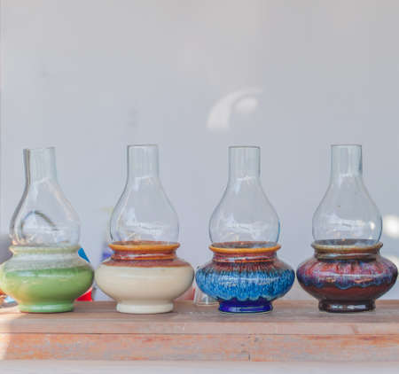Street lanterns in the gazebo on the street. Oil lamps for decor