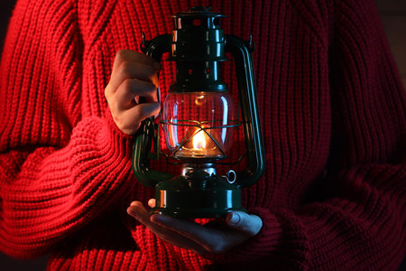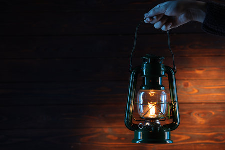 Oil Lamp Lighting up the Darkness or Burning kerosene lamp background, concept lighting