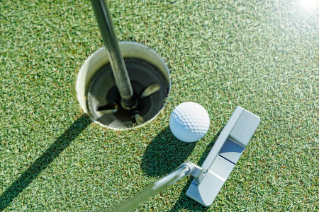 Golf ball and putter on the green