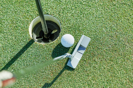 Golfer putting ball on the green on a sunny day at the golf course