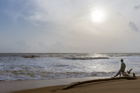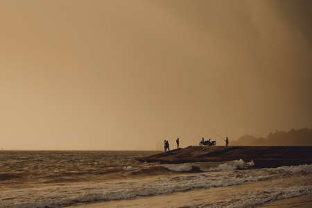 Sunrise time during traveling for refreshing mind and soul apart from fun to the seashore Beach around Asia, India. Odisa, India, very popular in eastern India.PURI, FEBRUARY 2020.